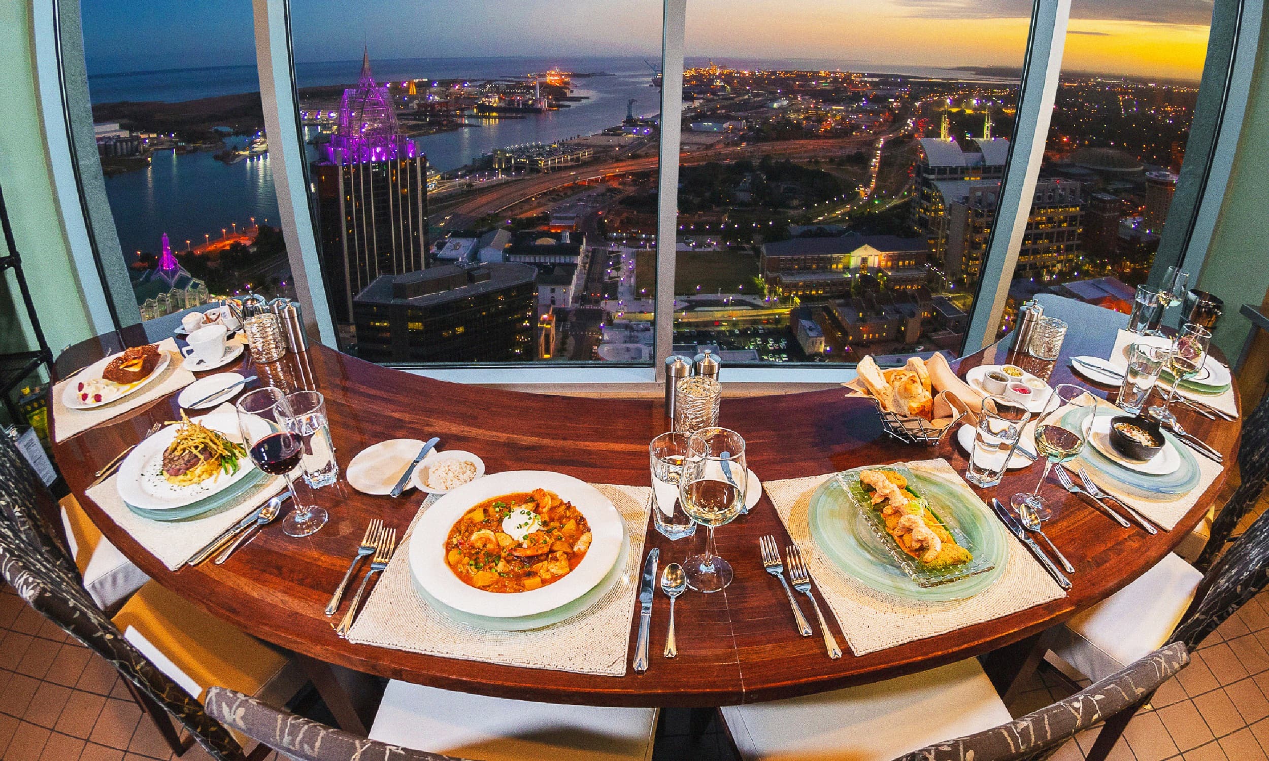 Dauphin’s: Enjoy casual fine dining overlooking Mobile Bay with a French Creole inspired menu. The menu features Gulf seafood options like Gulf shrimp chowder and shrimp and grits and other favorites including steak and Joe Cain dip.