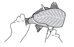Lay the fish flat on a surface, hold it by the tail and cut straight down the middle from tail to tip, keeping your knife close to but not into the backbone.