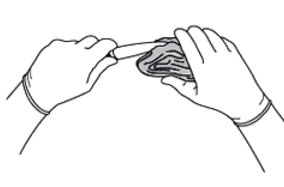 Hold the oyster with the cup side down (if it’s hard to tell, just make your best guess) and the pointy end facing you. Hold the oyster down on a hard surface, making sure your oyster hand is perpendicular to your knife. Then slide the knife into the hinge of the oyster and twist it until you hear it pop. (This is the hard part, so be patient with your mollusk!)