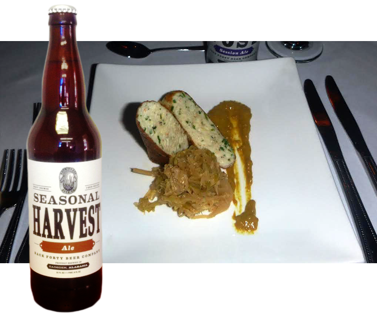 Once every part of the dish has been prepared, put browned and warm sausage on a bias. Place ¼ cup cabbage on a plate. Lay cut sausage next to cabbage. Streak plate with mustard. Serve immediately.