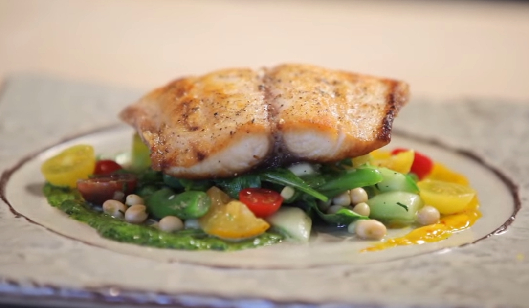 Salt and pepper the cobia. Place the cobia on a hot grill and cook 4 to 5 minutes on each side or until the fish is cooked through and flakes easily when tested with a fork.