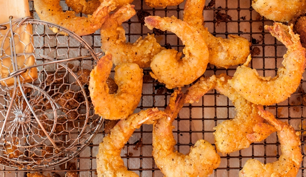Once you’ve got plenty of shrimp breaded how you like them, drop them into the fry oil for about 4 minutes or until they’re a light, golden brown. When the shrimp are ready to be taken out, set them on a tray of paper towels to soak up the excess oil.
