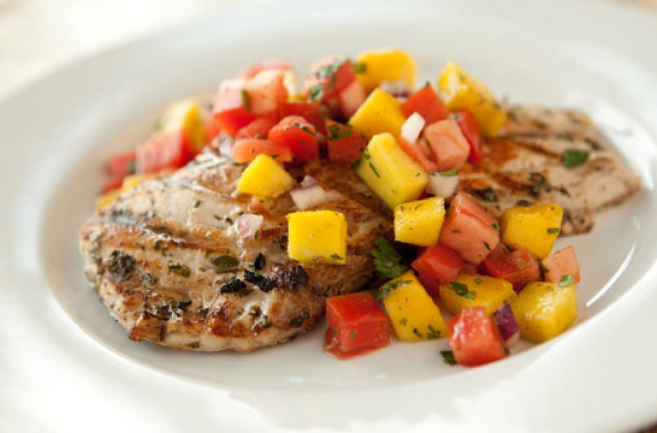 Chef Chris Hastings’ Grouper with Tomato, Avocado, and Grilled Vidalia Onions with Basil-Lime Vinaigrette Seafood: Fish